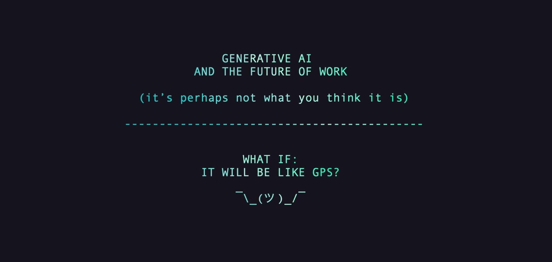 If we strike this balance, generative AI will not be a revolution that replaces humans but an evolution that expands our capabilities. It will not mark the end of work but the dawn of a new kind of creativity. And just as we once learned to use GPS without forgetting how to navigate with a map, we will integrate AI into our workflows without losing our ability to think critically and creatively.